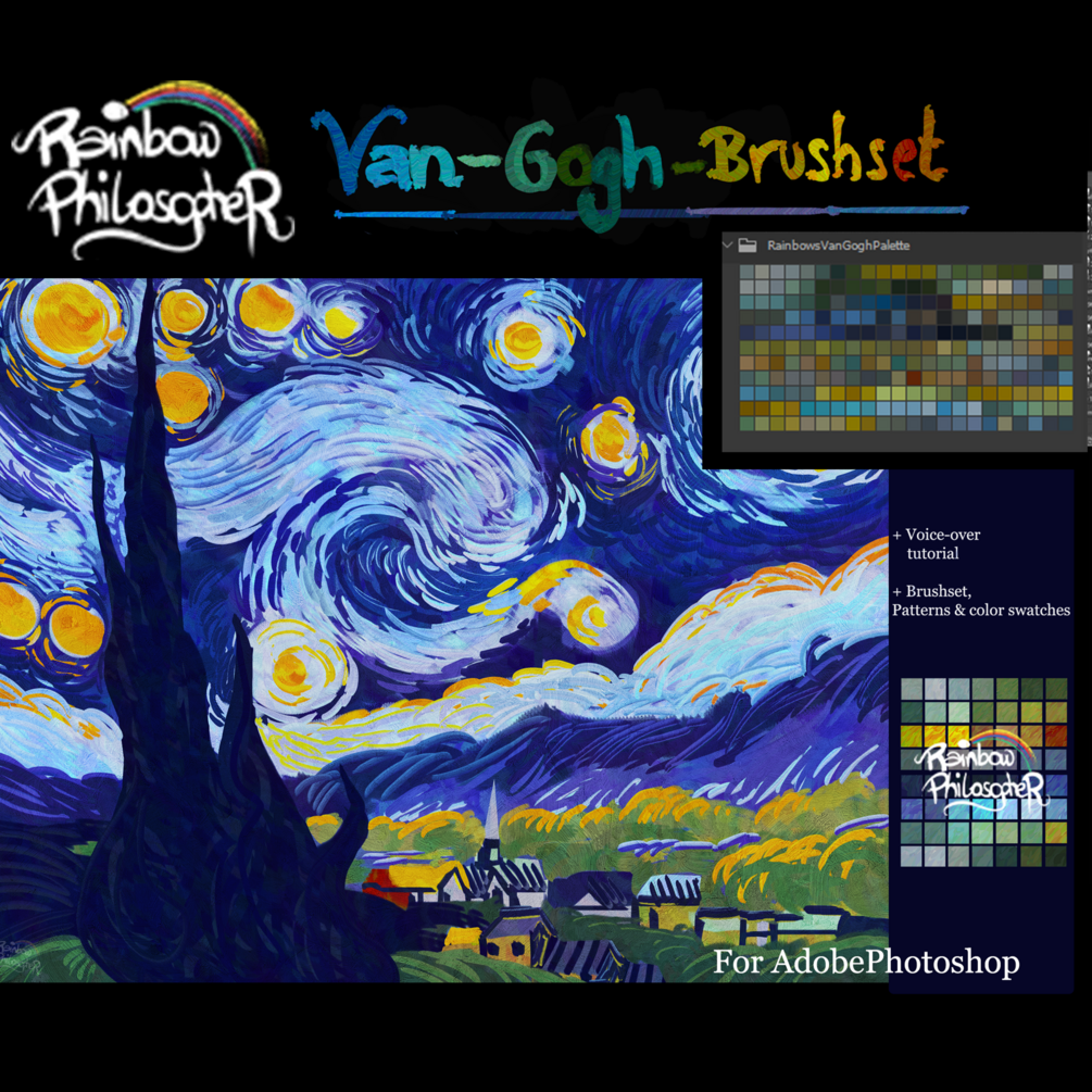 #brushset #artistic #rainbowphilosopher #rainbow #vangogh #impressionism #starrynights #photoshop #digitalart #art #artwork #brush #pattern #swatches #artist #stars #mountains #tree #city #landscape